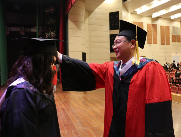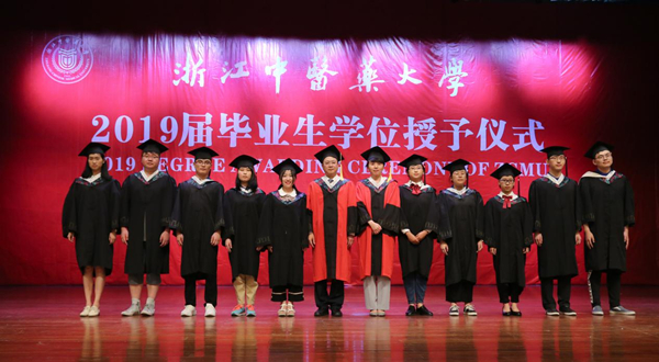 陈卫建书记在致辞中提到,“做一名医者,要常怀自治之心,要常怀恻隐之心,要常怀赤诚之心”,希望毕业生从医后,除却收到冷冰冰的诊疗费外,还能收到更多的感谢和挂念、称赞与敬佩,这是对2019届全体毕业生的深深期盼与由衷共勉。在聆听毕业生代表发言和神圣的医学生宣誓之后,校院领导为14名浙江省优秀毕业生颁奖,为10名校友联络员颁发了聘书。最后,典礼会场举行了庄严的毕业生学位授予仪式,由张元龙副书记宣读学位授予决议,由吕伯东院长、刘英超副院长为毕业生拨穗,标志着320名本科毕业生正式取得了学位!