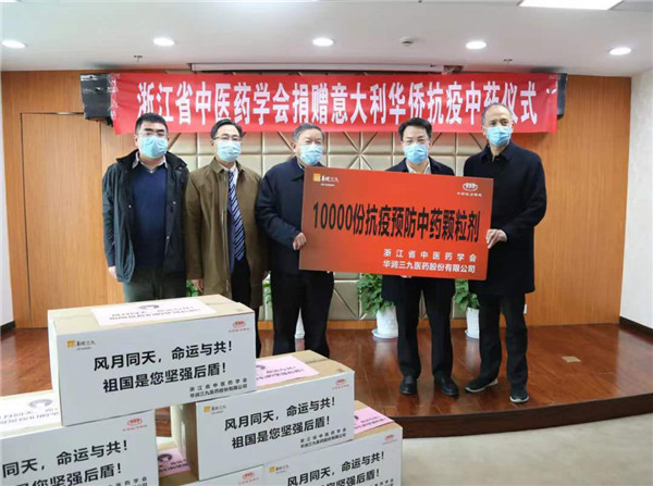 ▲3月10日省中医药学会向意大利华侨捐赠中药仪式