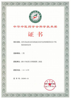 中华中医药学会科技成果、优秀人才奖由中华中医药学会设立,旨在奖励在中医药科研、学术、管理工作中取得优秀成果的集体和个人,该奖项代表着全国中医药行业的重要科技成果、优秀人才,是全国发现、培养、激励中医药科技人才的重要奖项。本次奖励的荣获是对我院研究人员在中医药事业继承与发展中作出的重要贡献的充分肯定。(科研部)