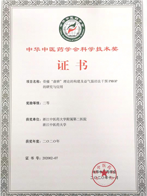 我院共有2个科技成果项目喜获奖励,分别是史晓林教授领衔的项目“骨痿‘虚瘀’理论的构建及益气温经法干预PMOP的研究与应用”荣获科学技术奖二等奖;蔡宛如教授领衔的项目“芪冬活血饮及其有效成分治疗急性肺损伤的分子机制及临床应用”荣获科学技术奖三等奖。