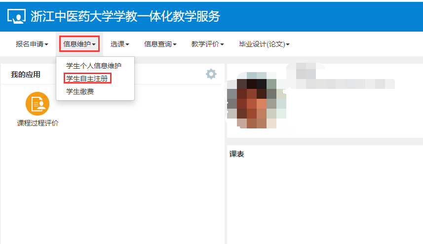 2、点击信息维护→学生自主注册。
