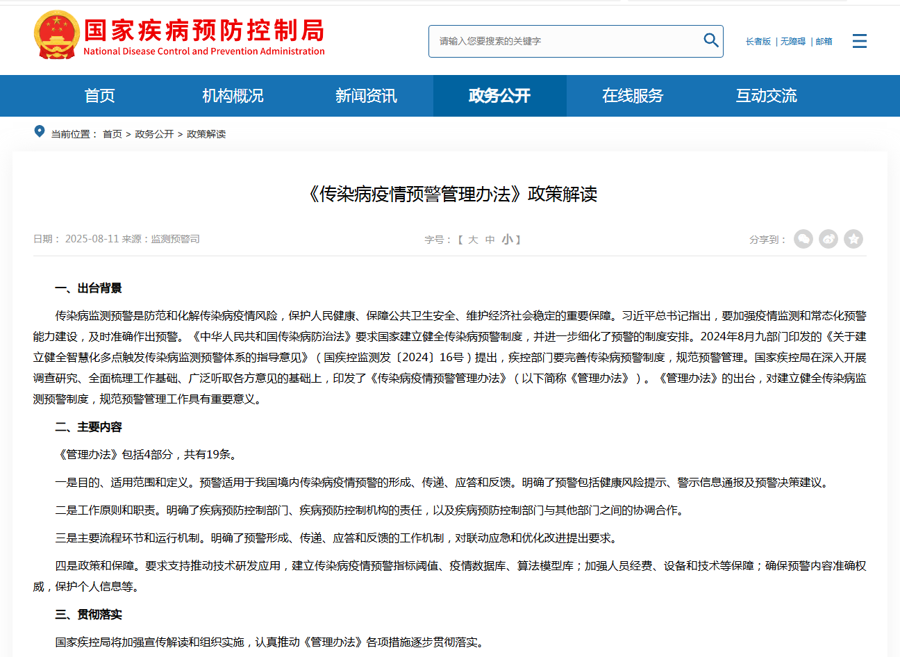 第五条 国家疾病预防控制局负责建立传染病疫情预警工作制度,指导各级疾病预防控制部门开展传染病疫情预警工作。省级及以下各级疾病预防控制部门应当落实传染病疫情预警工作制度,负责建立健全本行政区域内传染病疫情预警工作机制,指导本级疾病预防控制机构和下一级疾病预防控制部门规范开展传染病疫情预警工作。根据风险评估结果,负责进行警示信息通报、报请卫生健康部门向同级人民政府提出预警决策建议。