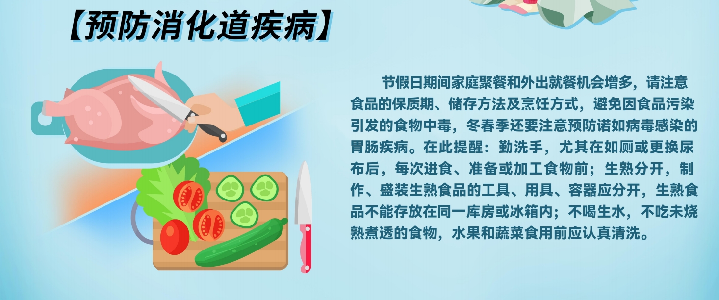 境内出行要注意流感等急性呼吸道传染病、诺如病毒肠炎、食物中毒及一氧化碳中毒的预防。