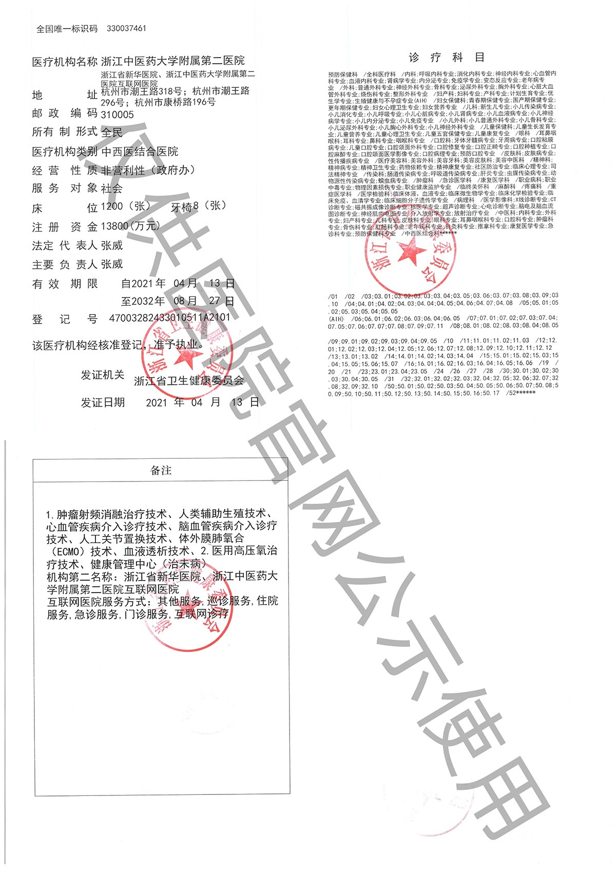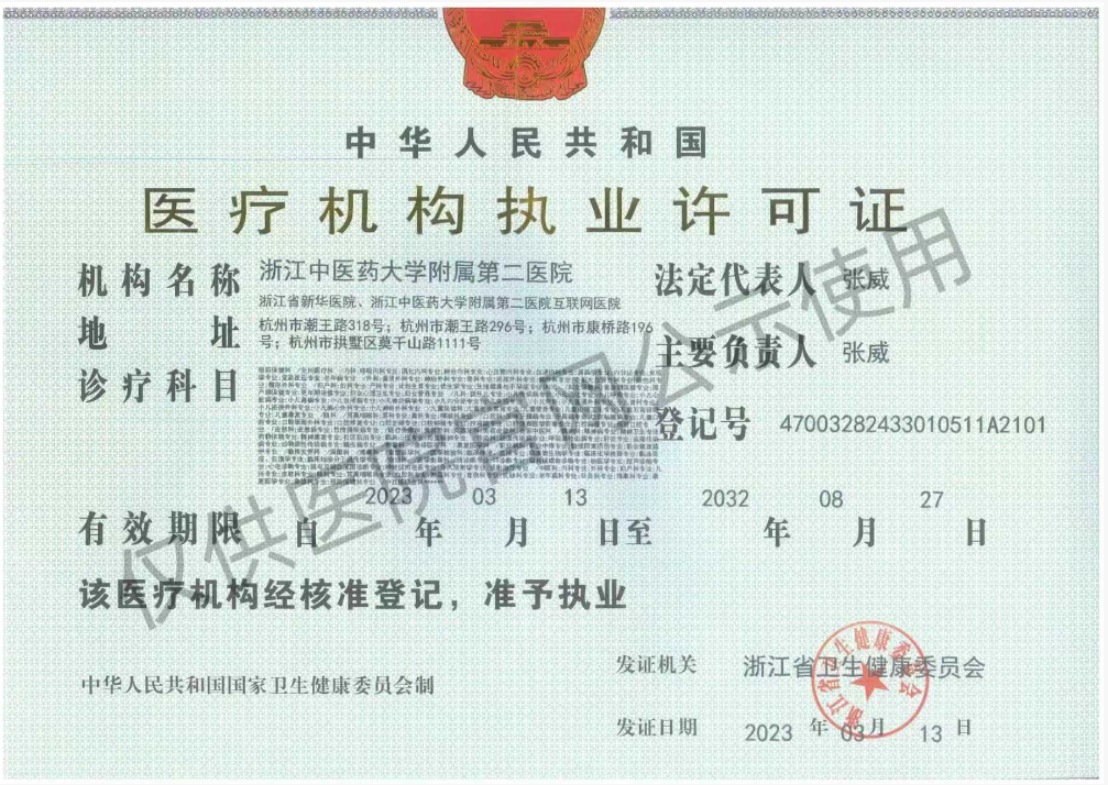 发证机关:浙江省卫生健康委员会