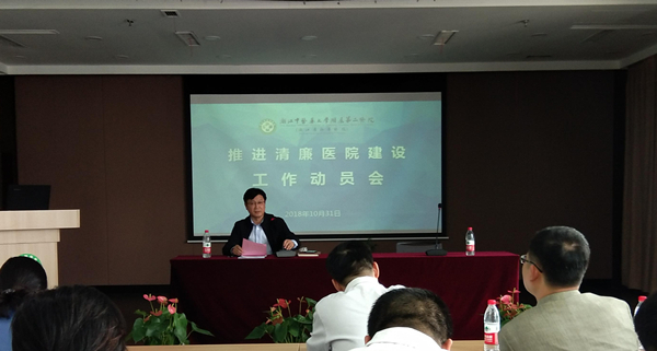 2018年10月31日,浙江中医药大学附属第二医院召开“推进清廉医院建设工作推进会”。党政领导班子成员、党委委员、纪委委员、党风廉政监督员,全体党支部书记、中层干部等参加动员会,会议由院长、党委副书记吕伯东主持。